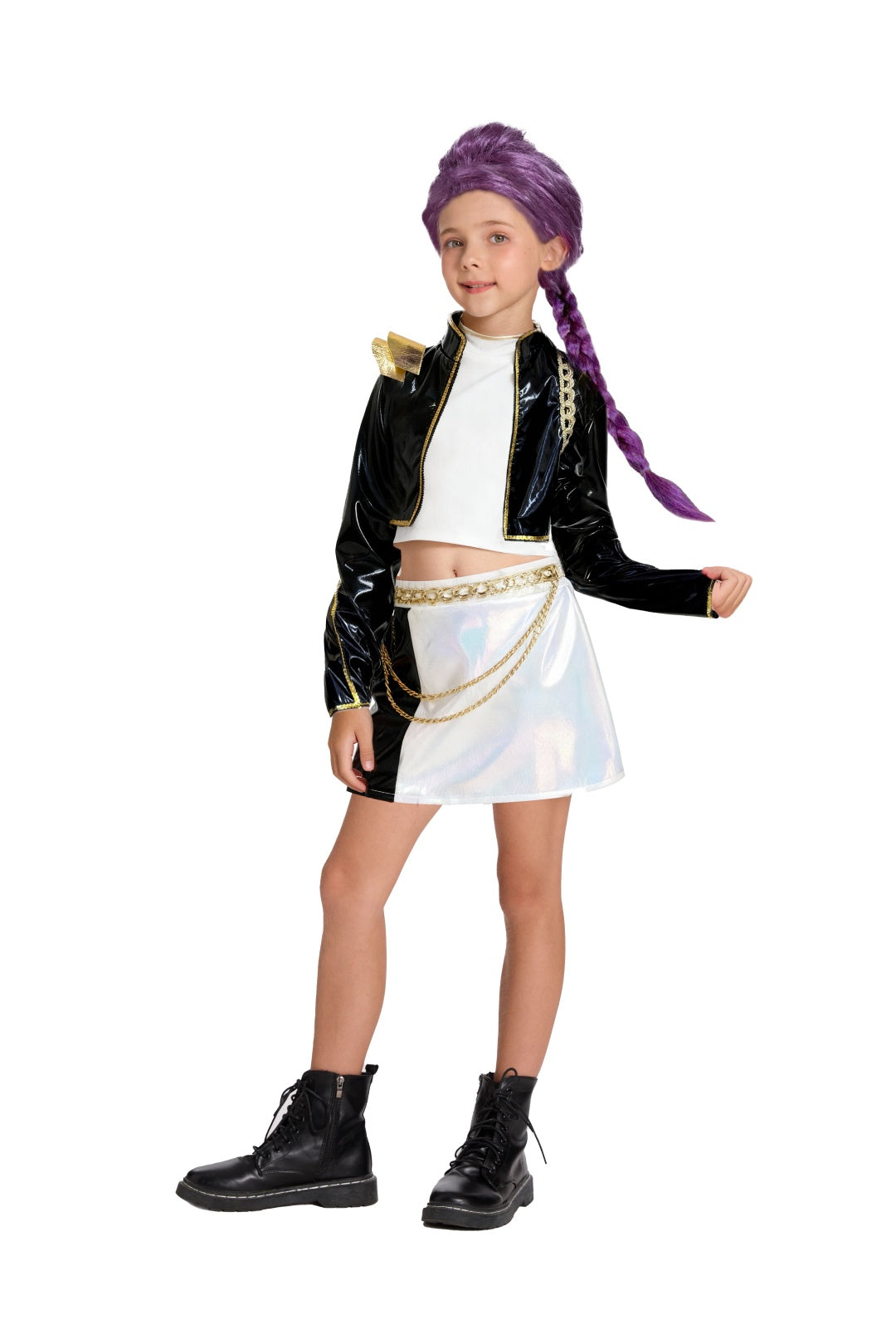 Rumi Cosplay Black Gold Top Skirt Kids Halloween Carnival Party